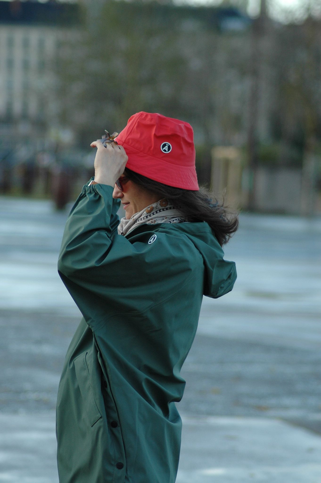Le bob Drëpsen est l'accessoire idéal pour un look décontracté. Imperméable, déperlant, pratique et léger, il est confectionné dans notre tissu emblématique en polyuréthane ultra doux et présente toutes les coutures scellées pour une meilleure protection.